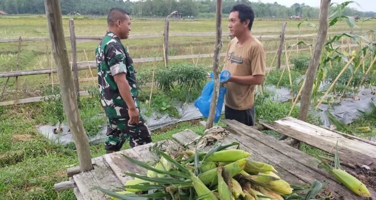 Babinsa Koramil 08/KM Kodim 0302/Inhu Serda Ari Waluyo membantu petani dalam rangka