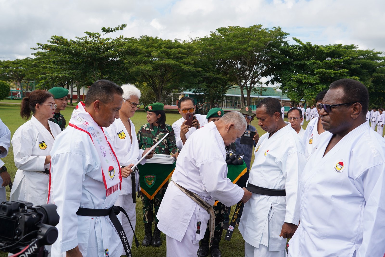 Merauke – Pangdam XXIV/Mandala Trikora Mayjen TNI Lucky Avianto memimpin pengukuhan 1.683 prajurit sebagai pemegang Sabuk Hitam INKAI sekaligus mencatatkan rekor MURI (Museum Rekor Indonesia) sebagai Ujian Karate Sabuk Hitam dengan Peserta Prajurit Terbanyak. Kegiatan digelar di Lapangan Upacara Kodam XXIV/MT, Jl. Poros Tanah Miring, Merauke, Kamis (4/12/2025).
