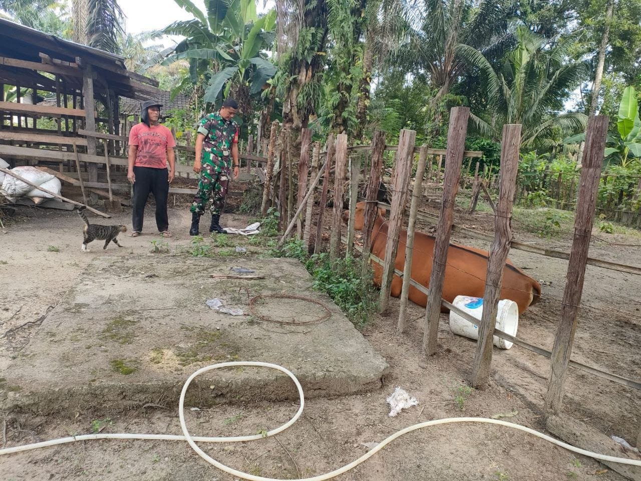 Sebagai langkah antisipasi penyebaran wabah Penyakit Mulut dan Kuku (PMK) pada hewan ternak Anggota Koramil 02/Kuantan Tengah Serda Marizal,As terus melaksanakan pemantauan, Pengecekan Kesehatan hewan ternak, dan sosialisasi terhadap pemilik ternak warga di Marsawah Kec. Sentajo Raya Kab. Kuansing. Minggu (14/12/2025).