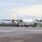 Babel – Yonif 501 Kostrad menggunakan pesawat C-130 Hercules tiba di Bandara