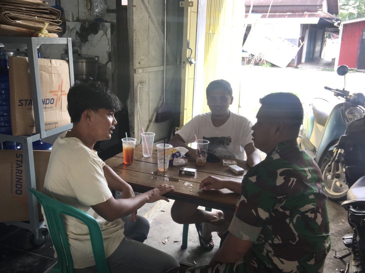 Babinsa Pratu Teguh Muhammad Yamin menuturkan kepada para pemuda menjadi salah satu tujuan dalam membina dan meningkatkan jalinan komunikasi, karena dari mereka akan diperoleh informasi perkembangan dan situasi, sehingga bisa digunakan untuk deteksi dini dan cegah dini, dengan mengajak Babinsa untuk berdiskusi di wilayah binaannya.