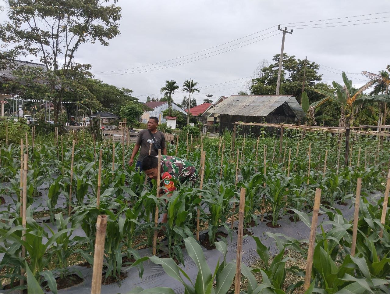 Teluk Kuantan – Babinsa Koramil 02/KT Kodim 0302/Inhu Serma Teni Maldes Dampingi Petani Jagung dalam kegiatan Binternya kali ini melaksanakan tugas pendampingan ketahanan pangan kepada Bapak Isap yang merupakan salah satu petani jagung di wilayah binaan desa Geringging Jaya Kec. Sentajo Raya Kab. Kuansing, Senin (27/04/2026).