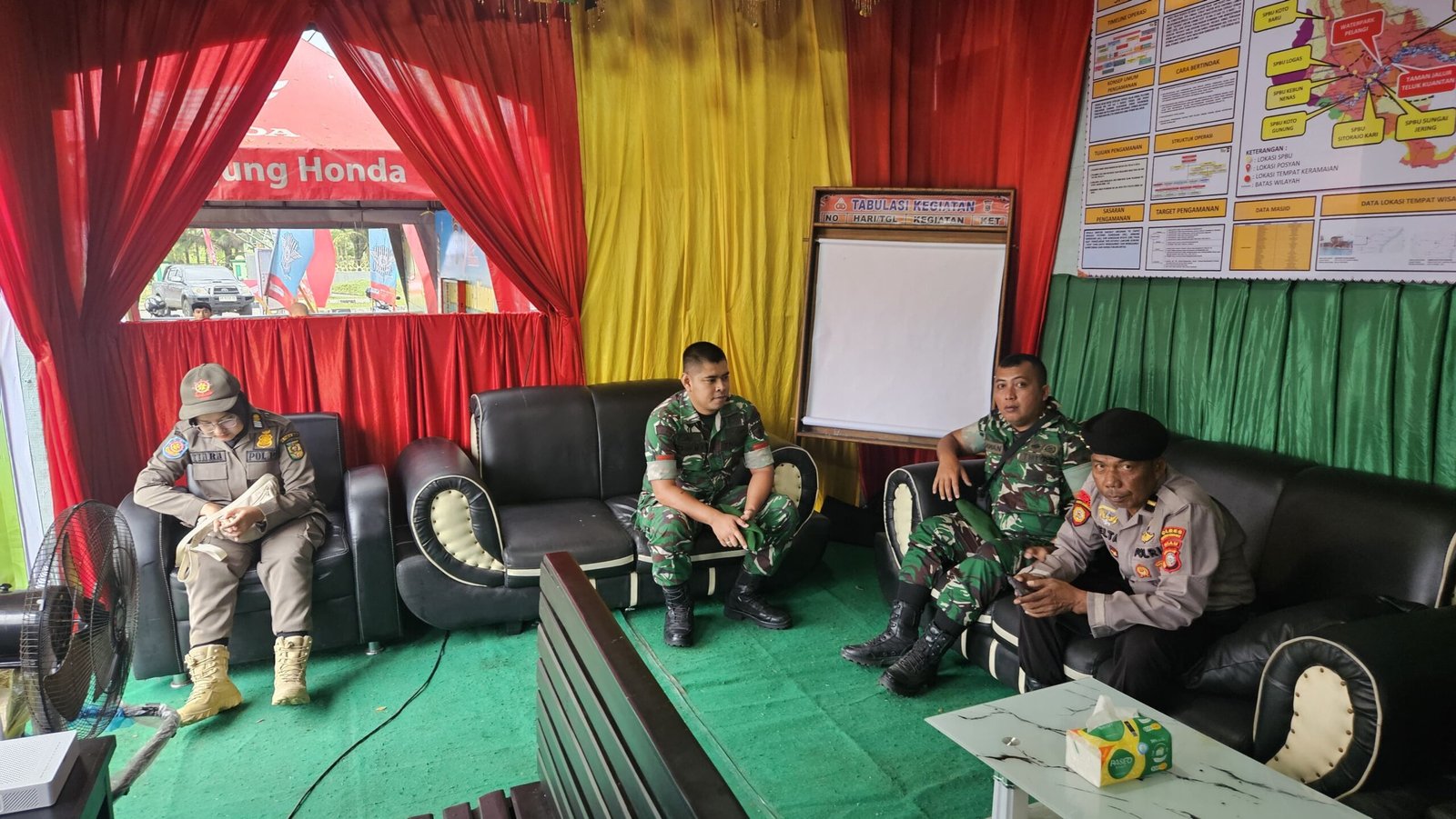 Babinsa Koramil 02/KT Kopda Irawan mengatakan, “dalam rangka memberikan keamanan dan kenyamanan bagi Masyarakat dan menjaga stabilitas situasi pada mudik lebaran maka Babinsa melaksanakan Pos Pam Lebaran di beberapa titik, salah satunya di Kecamatan Kuantan Tengah tepatnya di Tugu Carano Teluk Kuantan.