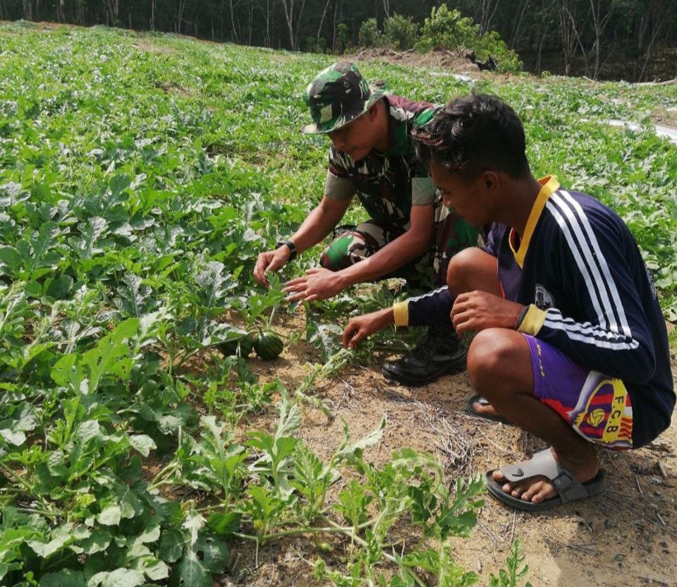 Teluk Kuantan – Babinsa Koramil 02/Kuantan Tengah Kodim 0302/Inhu Serda Marizal,As rutin lakukan kegiatan pendampingan terhadap ketahanan pangan diwilayah binaannya, yakni membantu petani merawat tanaman semangka bertempat di desa Marsawah Kecamatan Sentajo Raya Kabupaten Kuantan Singingi, Senin (15/12/2025).