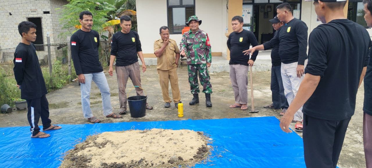 Teluk Kuantan – Babinsa Koramil 02/KT Kodim 0302/Inhu Sertu Desma Dedi melaksanakan pendampingan Pelatihan Pembuatan Pupuk Kompos bersama kelompok tani, yang berlangsung di Halaman Kantor Desa Titian Modang Kopah Kec. Kuantan Tengah Kab. Kuansing. Rabu (31/12/2025).