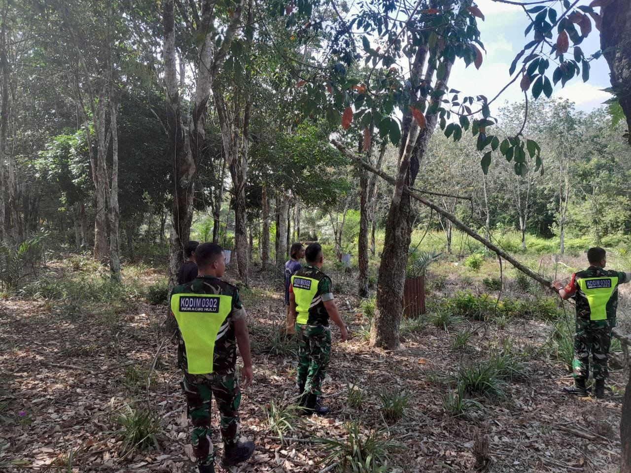 Babinsa Koramil 02/Kuantan Tengah Kodim 0302/Inhu Serka Despi Herdison bersama dengan warga masyarakat menyisir sekitar daerah lahan masyarakat maupun semak belukar di daerah wilayah binaannya.