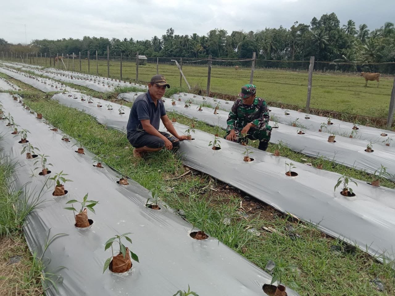 “Rumput ini kalau tidak segera dibersihkan akan didatangi ulat daun dan tanaman cabe ini akan ikut dirusak oleh ulat juga. Sehingga rumput liar ini harus segera dibersihkan “Ungkap Babinsa.
