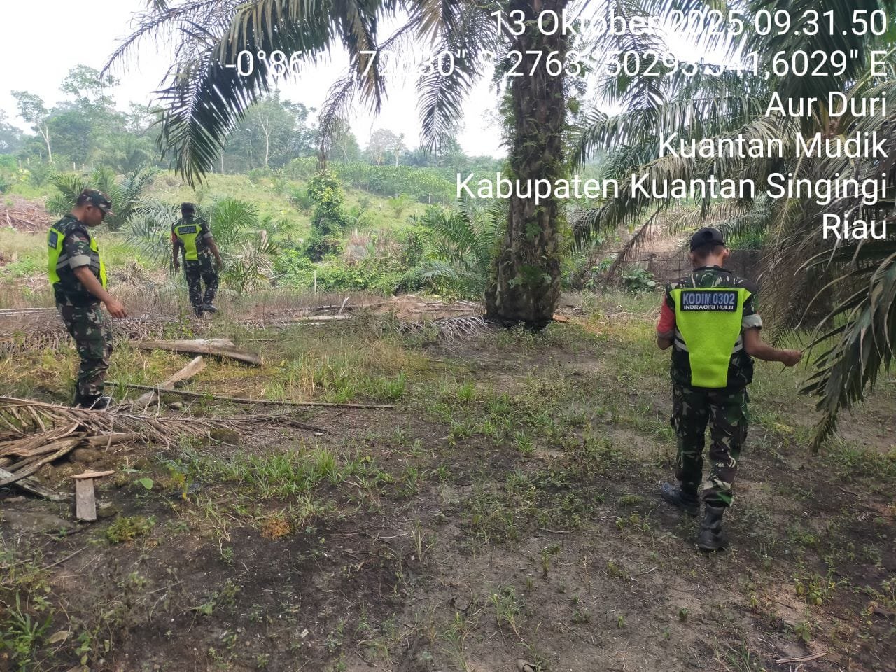 Babinsa Koramil 08/KM Kodim 0302/Inhu Sertu Nopin yulwandi dan Tiga rekan Babinsa Lainnya melaksanakan Kegiatan Patroli Kebakaran Hutan Dan Lahan ( Karhutla ) Di wilayah Desa Aur duri Kecamatan Kuantan mudik Kabupaten Kuantan Singingi. Senin ( 13/10/2025 ).