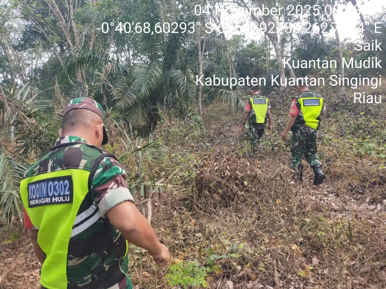 Babinsa Koramil 08/KM Kodim 0302/Inhu Sertu Nopin dan Tiga rekan Babinsa Lainnya melaksanakan Kegiatan Patroli Kebakaran Hutan Dan Lahan ( Karhutla ) Di wilayah Desa Saik Kecamatan Kuantan mudik Kabupaten Kuantan Singingi. Selasa ( 04/11/2025 ).