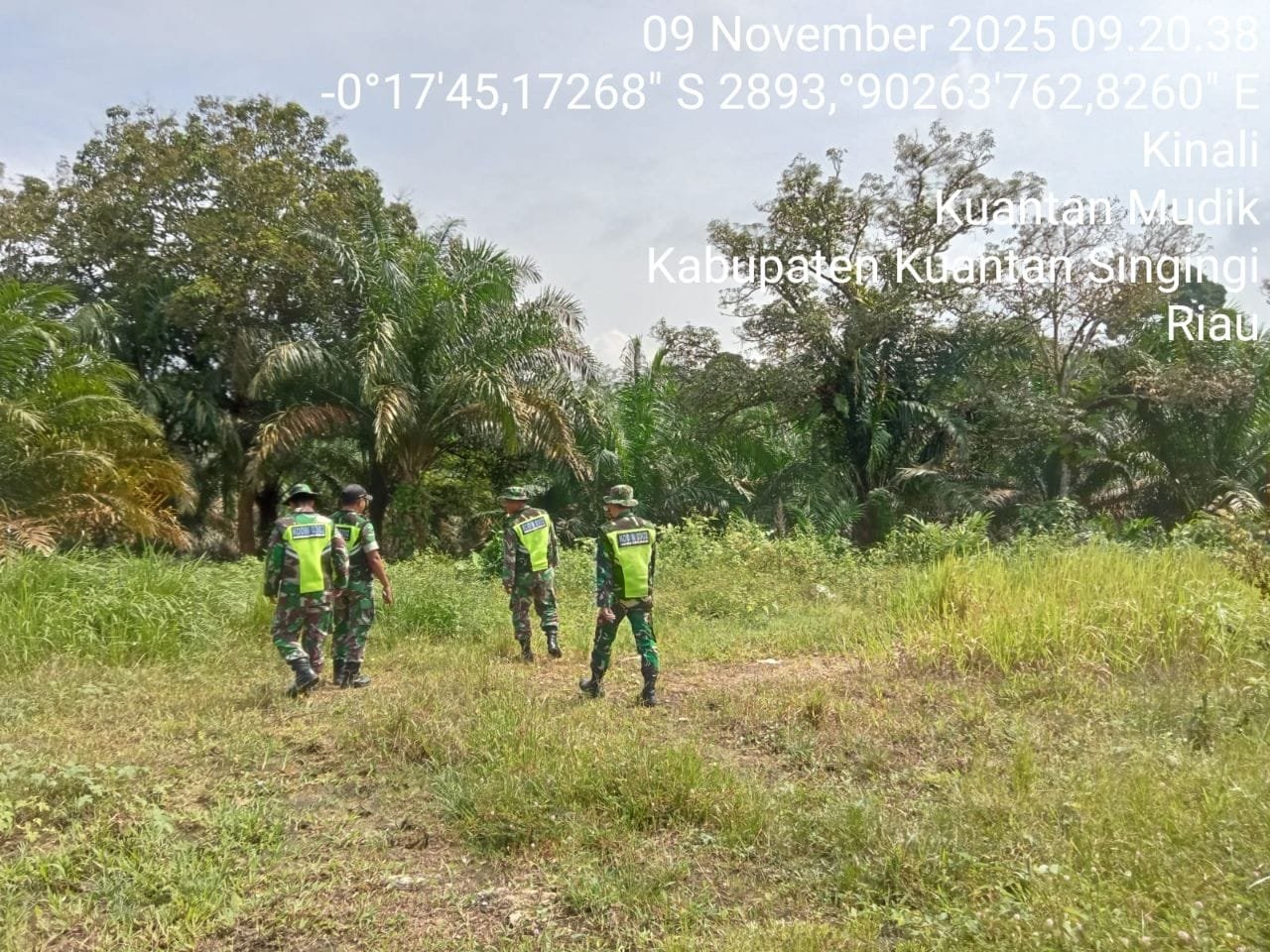 Babinsa Koramil 08/KM Kodim 0302/Inhu Sertu Adi Priyanto dan Tiga rekan Babinsa Lainnya melaksanakan Kegiatan Patroli Kebakaran Hutan Dan Lahan ( Karhutla ) Di wilayah Desa Kinali Kecamatan Kuantan mudik Kabupaten Kuantan Singingi. Minggu ( 09/11/2025 ).