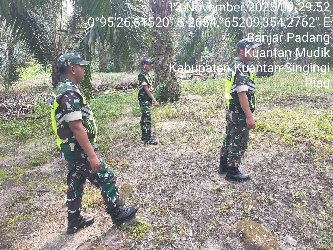 Babinsa Koramil 08/KM Kodim 0302/Inhu Sertu Nopin dan Tiga rekan Babinsa Lainnya melaksanakan Kegiatan Patroli Kebakaran Hutan Dan Lahan ( Karhutla ) Di wilayah Desa Banjar Padang Kecamatan Kuantan mudik Kabupaten Kuantan Singingi. Kamis ( 13/11/2025 ).