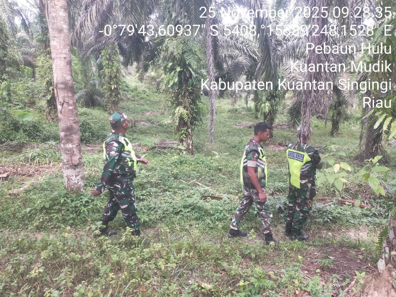 Babinsa Koramil 08/KM Kodim 0302/Inhu Serda Ari Waluyo dan Tiga rekan Babinsa Lainnya melaksanakan Kegiatan Patroli Kebakaran Hutan Dan Lahan ( Karhutla ) Di wilayah Desa Pebaun hulu Kecamatan Kuantan mudik Kabupaten Kuantan Singingi. Selasa ( 25/11/2025 ).
