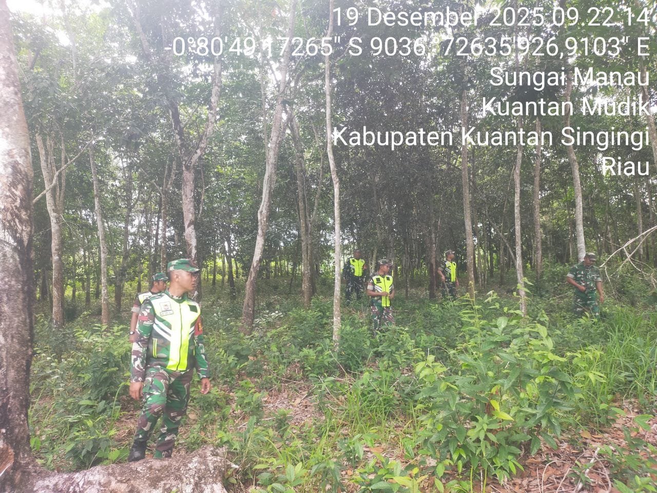 Babinsa Koramil 08/KM Kodim 0302/Inhu Sertu Hendi Saputra dan rekan Babinsa Lainnya melaksanakan Kegiatan Patroli Kebakaran Hutan Dan Lahan ( Karhutla ) Di wilayah Desa Sungai Manau Kecamatan Kuantan mudik Kabupaten Kuantan Singingi. Jumat ( 19/12/2025 ).