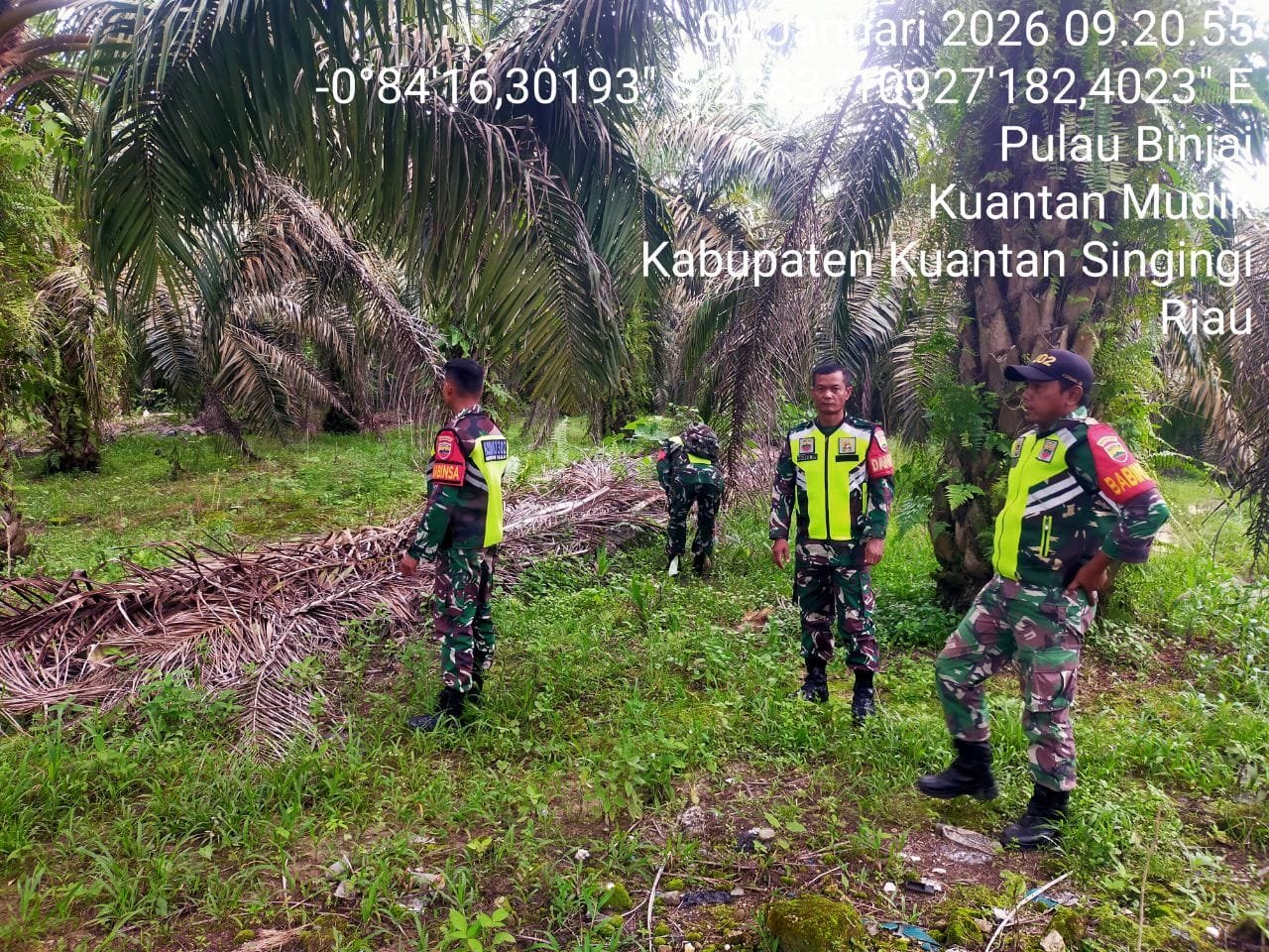 Babinsa Koramil 08/KM Kodim 0302/Inhu Sertu Hendro dan rekan Babinsa Lainnya melaksanakan Kegiatan Patroli Kebakaran Hutan Dan Lahan ( Karhutla ) Di wilayah Desa Pulau Binjai Kecamatan Kuantan mudik Kabupaten Kuantan Singingi. Minggu (04/01/2026 ).