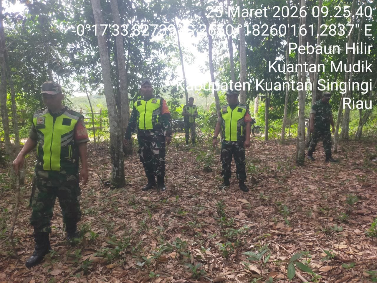 Babinsa Koramil 08/KM Kodim 0302/Inhu Sertu Kadarisman dan rekan Babinsa Lainnya melaksanakan Kegiatan Patroli Kebakaran Hutan Dan Lahan ( Karhutla ) Di wilayah Desa Pebaun Hilir Kecamatan Kuantan mudik Kabupaten Kuantan Singingi. Rabu (25/03/2026 ).