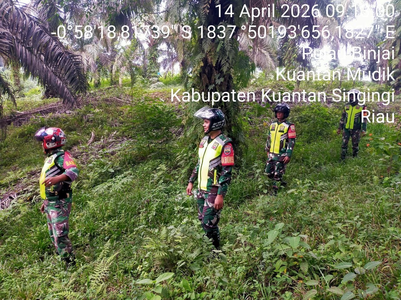 Babinsa Koramil 08/KM Kodim 0302/Inhu Sertu Hendro dan rekan Babinsa Lainnya melaksanakan Kegiatan Patroli Kebakaran Hutan Dan Lahan ( Karhutla ) Di wilayah Desa Pulau Binjai Kecamatan Kuantan mudik Kabupaten Kuantan Singingi. Selasa (14/04/2026 ).