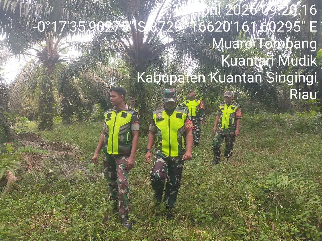 Babinsa Koramil 08/KM Kodim 0302/Inhu Serka Edi Syam dan rekan Babinsa Lainnya melaksanakan Kegiatan Patroli Kebakaran Hutan Dan Lahan ( Karhutla ) Di wilayah Desa Muaro tombang Kecamatan Kuantan mudik Kabupaten Kuantan Singingi. Sabtu (18/04/2026 ).