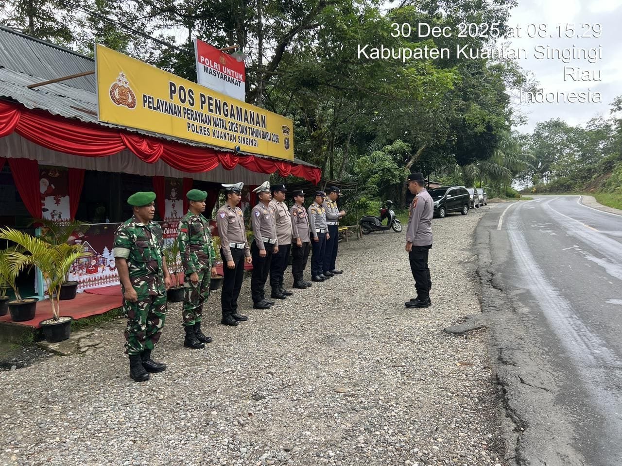 Babinsa Koramil 08/KM Kodim 0302/Inhu Sertu Kadarisman Dan Praka Inel Jisman melaksanakan Kegiatan Pam Nataru bersama anggota Polres Kuansing,Satpol pp,Dishub,dan Puskesmas,bertempat di Pos Pam Perbatasan Riau-Sumbar,Desa Kasang Kecamatan Kuantan Mudik Kabupaten kuantan Singingi guna memberikan rasa aman kepada warga pada libur Natal dan Tahun baru 2026. Selasa ( 30/12/2025 ).