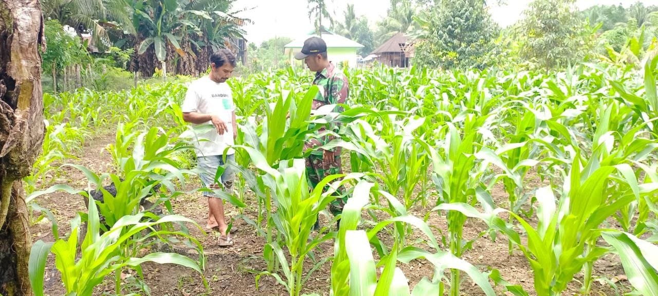 Babinsa Koramil 08/KM Kodim 0302/Inhu Serda Ari Waluyo laksanakan kegiatan pendampingan dalam perawatan tanaman jagung milik petani di desa Sungai Kelelawar kecamatan Hulu Kuantan Kabupaten Kuantan Singingi. Rabu ( 25/02/2026 ).