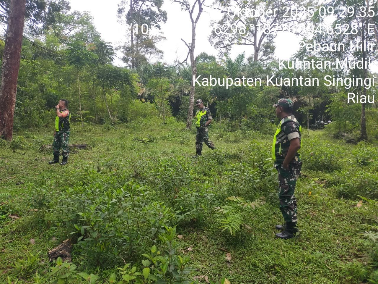 Guna mencegah kebakaran hutan dan lahan,Babinsa Koramil 08/KM Kodim 0302/Inhu Diantaranya Sertu Yulindo dan tiga Orang Rekan babinsa lainnya melaksanakan kegiatan patroli Di wilayah Desa Pebaun Hilir Kecamatan Kuantan Mudik Kabupaten Kuantan Singingi. kamis ( 02/10/2025 ).