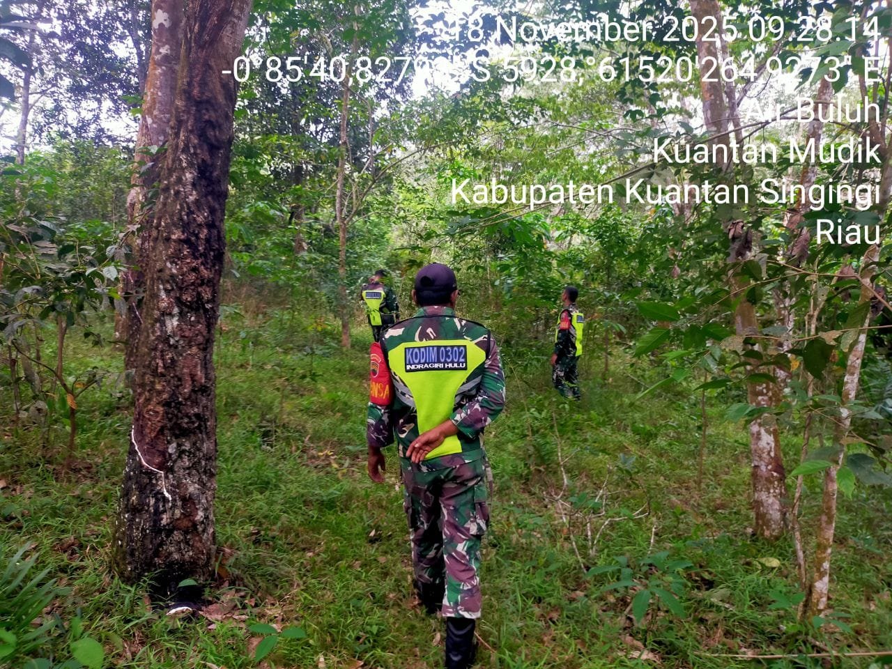 Guna mencegah kebakaran hutan dan lahan,Babinsa Koramil 08/KM Kodim 0302/Inhu Diantaranya Sertu Gusman dan tiga Orang Rekan babinsa lainnya melaksanakan kegiatan patroli Di wilayah Desa Air Buluh Kecamatan Kuantan Mudik Kabupaten Kuantan Singingi. Selasa ( 18/11/2025 ).