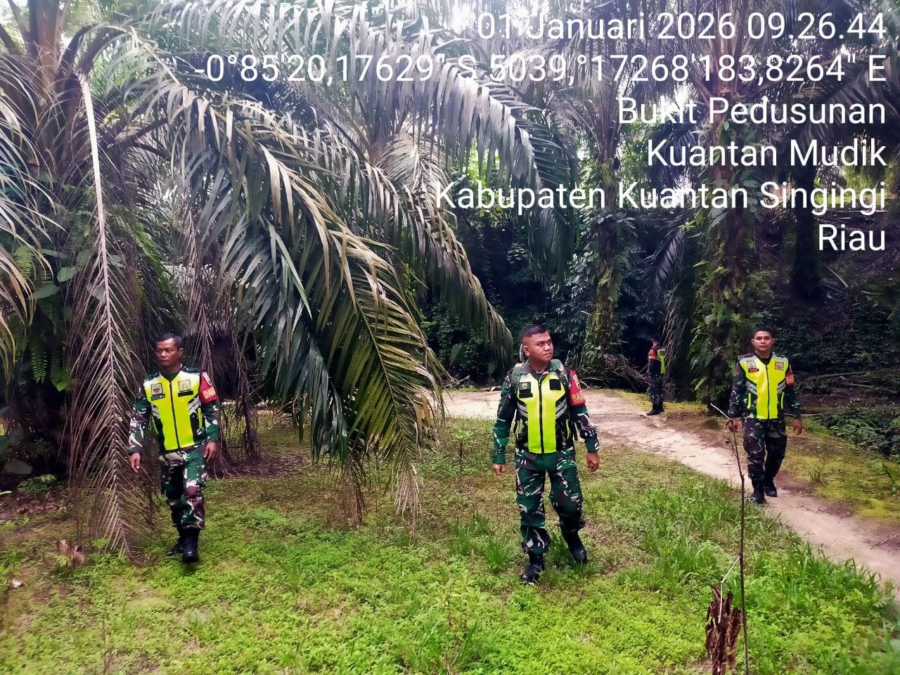 Guna mencegah kebakaran hutan dan lahan,Babinsa Koramil 08/KM Kodim 0302/Inhu Diantaranya Sertu Adi Priyanto dan Rekan babinsa lainnya melaksanakan kegiatan patroli Di wilayah Desa Bukit Pedusunan Kecamatan Kuantan Mudik Kabupaten Kuantan Singingi. Kamis ( 01/01/2026 ).