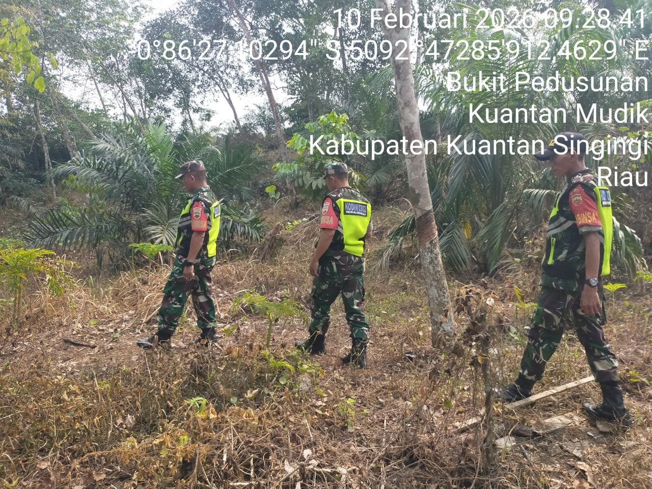 Guna mencegah kebakaran hutan dan lahan,Babinsa Koramil 08/KM Kodim 0302/Inhu Diantaranya Sertu Adi Priyanto dan Rekan babinsa lainnya melaksanakan kegiatan patroli Di wilayah Desa Bukit Pedusunan Kecamatan Kuantan Mudik Kabupaten Kuantan Singingi. Selasa ( 10/02/2026 ).