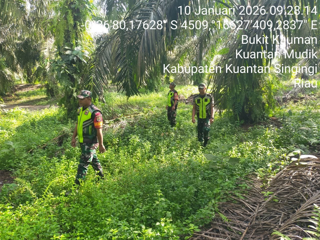 Babinsa Koramil 08/KM Kodim 0302/Inhu selalu rutin melaksanakan patroli dan sosialisasi pencegahan Karhutla kepada warga.Seperti Sertu Adi Priyanto bersama rekan babinsa lainnya dengan melaksanakan patroli dan sosialisasi Karhutla kepada warga masyarakat Di Desa Bukit Kauman Kecamatan Kuantan Mudik Kabupaten Kuantan Singingi. Sabtu ( 10/01/2026 ).
