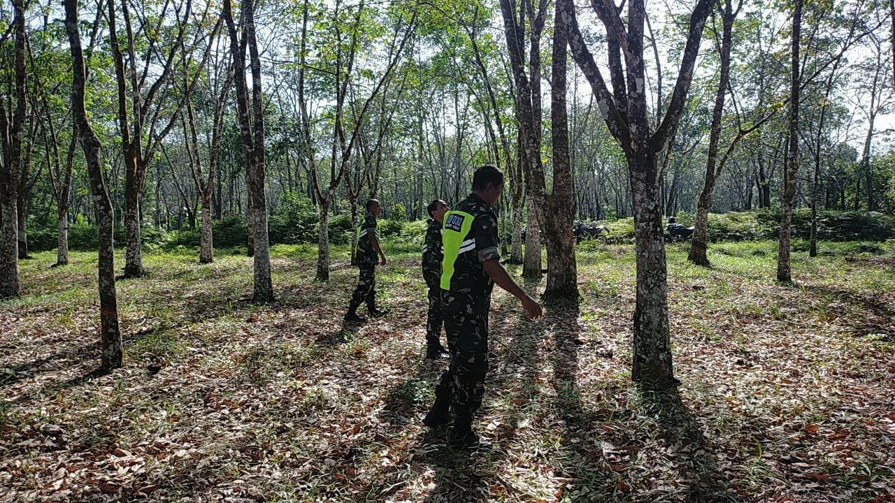 Babinsa Koramil 02/Kuantan Tengah Serma Teni Maldes bersama dengan warga masyarakat menyisir sekitar daerah lahan masyarakat maupun semak belukar di daerah wilayah binaannya.
