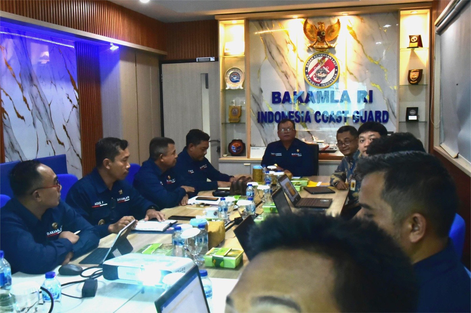 Di kesempatan yang sama, Direktur Kebijakan Bakamla Laksma Bakamla Taman Sembiring memperkenalkan jajaran perwakilan dari berbagai direktorat yang hadir, antara lain Dit. Kebijakan, Dit. Strategi, Dit. Opsudmar, Dit. Litbang, UPH, serta Dit. Operasi Laut. Sementara dari pihak Komwasjak, hadir Kabag Pengawasan Kepabeanan dan Cukai, Dede Hendra Jaya, beserta tiga anggota tim yaitu Yanuar Irawan, Anggi Adhitya, dan Husni A. Ulinnuha.