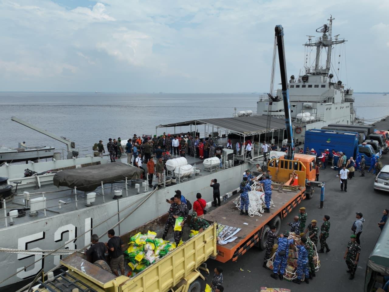 Dengan semangat gotong royong dan kebersamaan, prajurit TNI AL, TNI AD, TNI AU, POLRI, serta para relawan bahu-membahu memindahkan berbagai logistik bantuan dari truk ke atas KRI Teluk Gilimanuk (TGK)–531. Bantuan yang dimuat meliputi kebutuhan pokok, obat-obatan, perlengkapan kebersihan, selimut, hingga perlengkapan sehari-hari dengan total berat sekitar 200 ton, yang diharapkan dapat meringankan beban masyarakat di wilayah terdampak bencana.