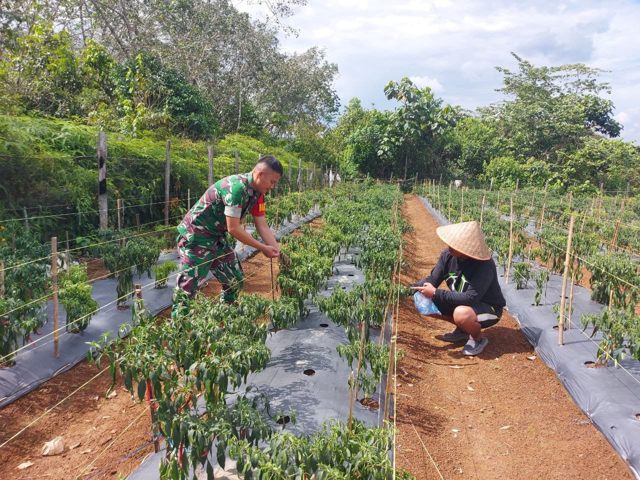 Teluk Kuantan – Babinsa Koramil 02/Kuantan Tengah Kodim 0302/Inhu Praka Achmad Kamal kembali melaksanakan pendampingan ketahanan pangan, khususnya cabe merah di desa Beringin Taluk Kec. Kuantan Tengah Kab. Kuansing, Kamis (09/10/2025).
