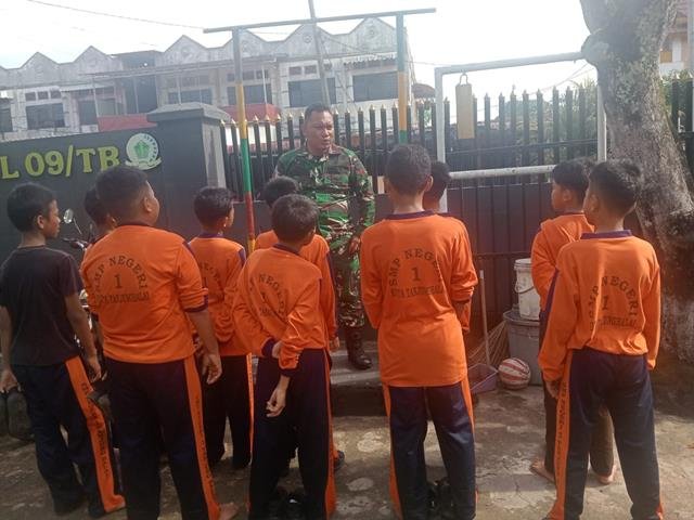 Tanjung Balai | Agar terus memberikan inovasi dan inspirasi bagi Sekolah, cinta tanah air dan terus memberikan contoh yang terbaik bagi sekolah, dalam rangka untuk membangun semangat juang generasi muda yang berwawasan pancasila untuk menyongsong masa depan yang berkualitas di era digital, dalam kesempatan ini seperti yang dilakukan oleh Personel Bintara Pembina Desa (Babinsa) Koramil 09/Tanjung Balai jajaran Kodim 0208/Asahan Kopda Muhammad Arif turun kewilayah binaan untuk melaksanakan kegiatan Wasbang, kegiatan ini guna menambah wawasan kebangsaan (Wasbang) kepada Siswa/Siswi SMP Negeri 1 Kota Tanjung Balai, kegiatan Wasbang untuk memberi wawasan kepada para siswa-siswi tentang pentingnya kesadaran bela negara dan wawasan Kebangsaan, bersama dengan Siswa SMPN 1 Kota Tanjung Balai Bapak Azhar Lubis dan 10 orang siswa SMP 1 Kota Tanjung Balai lainnya, kegiatan tersebut yang dilaksanakan bertempat di Kantor Koramil 09/TB Kota Tanjung Balai Kelurahan Tanjung Balai Kota II Kecamatan Tanjung Balai Selatan Kota Tanjung Balai, Jumat (10/04/2026).