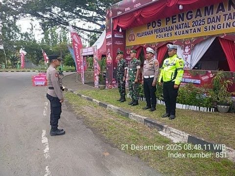 Teluk Kuantan – Bersama dengan tim gabungan dari TNI, Polri. Personil TNI-Polri berkomitmen siap menjaga keamanan menjelang perayaan Natal 2025 dan Tahun Baru 2026 (Nataru) khususnya di wilayah perbatasan Riau-Sumbar.