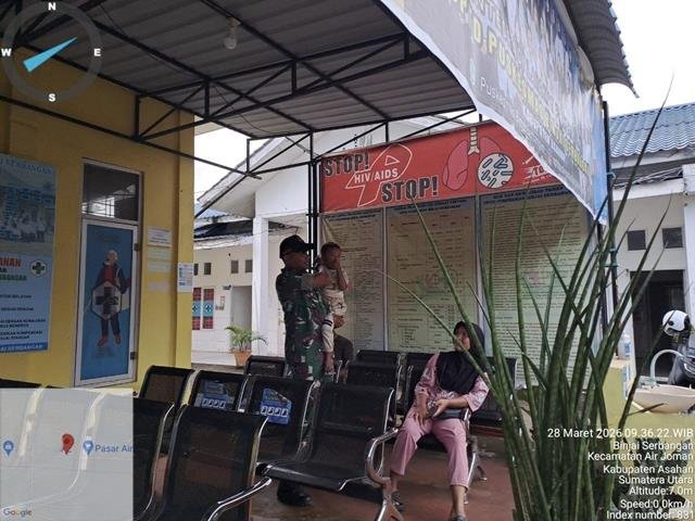 Asahan | Dalam rangka pembinaan wilayah (Binwanwil) serta mendukung program kesehatan masyarakat, Babinsa Serka Fery Rudiyanto melaksanakan kegiatan di Puskesmas Kelurahan Binjai Serbangan yang berada di Kelurahan Binjai Serbangan. Kegiatan tersebut bertujuan untuk mengetahui perkembangan kondisi kesehatan masyarakat sekaligus melakukan pendampingan terhadap tenaga kesehatan (nakes) dalam upaya mengatasi dan mencegah pertumbuhan yang tidak normal (stunting) pada anak. Dalam pelaksanaannya, Babinsa berkoordinasi dengan petugas kesehatan guna memperoleh informasi terkait data balita, program penanganan stunting, serta langkah-langkah pencegahan yang telah dilakukan di wilayah binaan. Hal ini dilakukan sebagai bentuk dukungan terhadap peningkatan kualitas kesehatan masyarakat.
