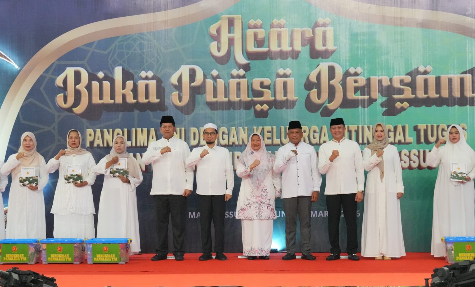 Jakarta – Panglima TNI Jenderal TNI Agus Subiyanto diwakili oleh Wakil Kepala Staf TNI Angkatan Darat (Wakasad) Letjen TNI Muhammad Saleh Mustafa menghadiri acara Buka Puasa Bersama dengan keluarga prajurit yang ditinggal tugas serta Warakawuri Dharma Nusa Kopassus yang berlangsung di Gedung Nanggala Makopassus, Cijantung, Jakarta Timur, Minggu (8/3/2026).