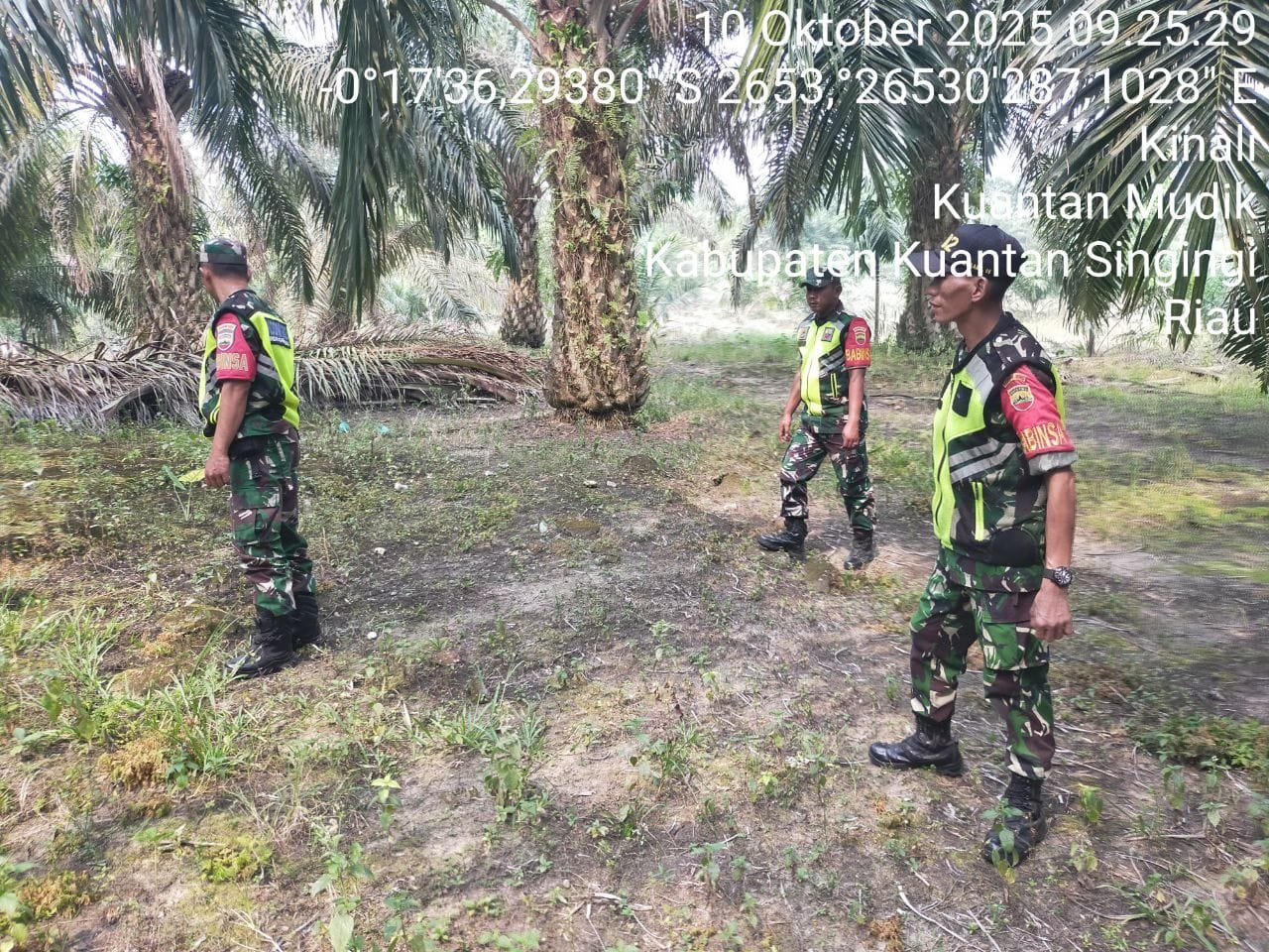 Babinsa Koramil 08/KM Kodim 0302/Inhu Sertu Adi Priyanto bersama 3 orang anggota Lainnya melaksanakan kegiatan patroli pencegahan kebakaran hutan dan lahan (karhutla) Di Desa Kinali kecamatan Kuantan mudik kabupaten Kuantan Singingi. Jumat ( 10/10/2025 ).