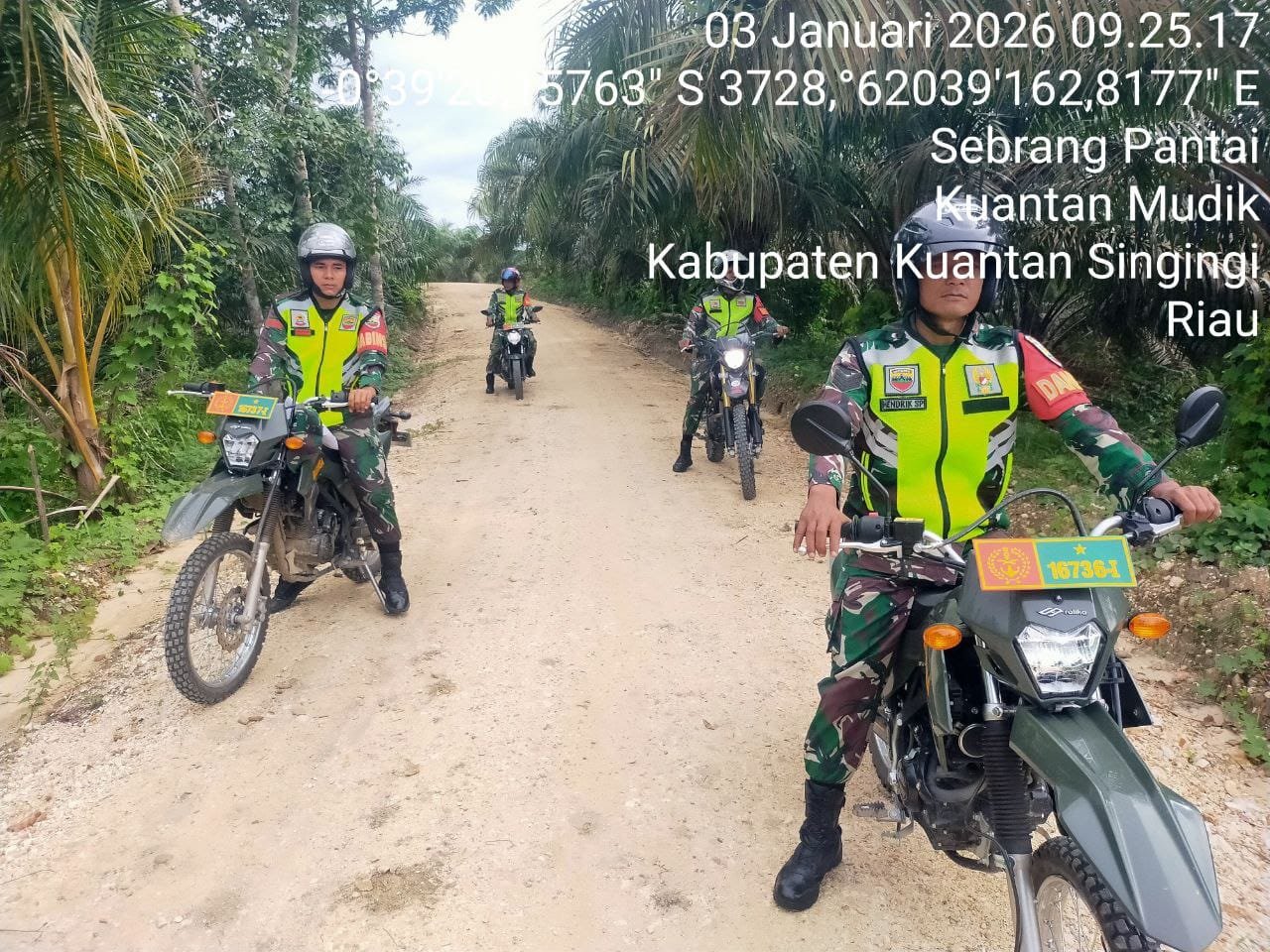 Babinsa Koramil 08/KM Kodim 0302/Inhu Sertu Hendi bersama rekan babinsa Lainnya melaksanakan kegiatan patroli pencegahan kebakaran hutan dan lahan (karhutla) Di Desa Sebrang Pantai kecamatan Kuantan mudik kabupaten Kuantan Singingi. Sabtu ( 03/01/2026 ).