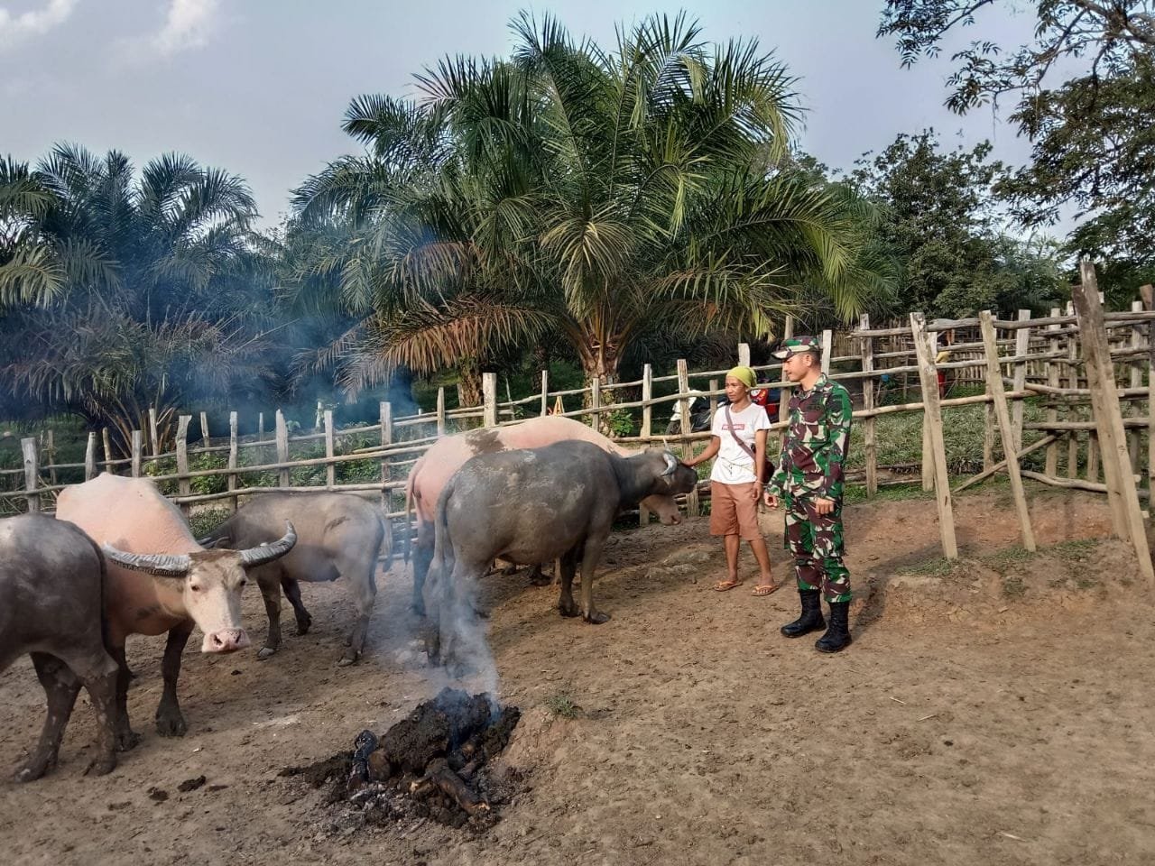 Babinsa di wilayah turun langsung memantau kesehatan ternak di sejumlah peternakan yang ada.Tujuannya untuk mencegah virus PMK dengan melihat langsung hewan peternak kemungkinan adanya ciri-ciri hewan tersebut terjangkit virus PMK.”Ia mengimbau kepada warga maupun peternak agar selalu menjaga kebersihan kandang dan kesehatan hewan ternaknya serta mengantisipasi datangnya hewan ternak seperti sapi, kambing dan kerbau dari wilayah lain”.Ujar Babinsa.