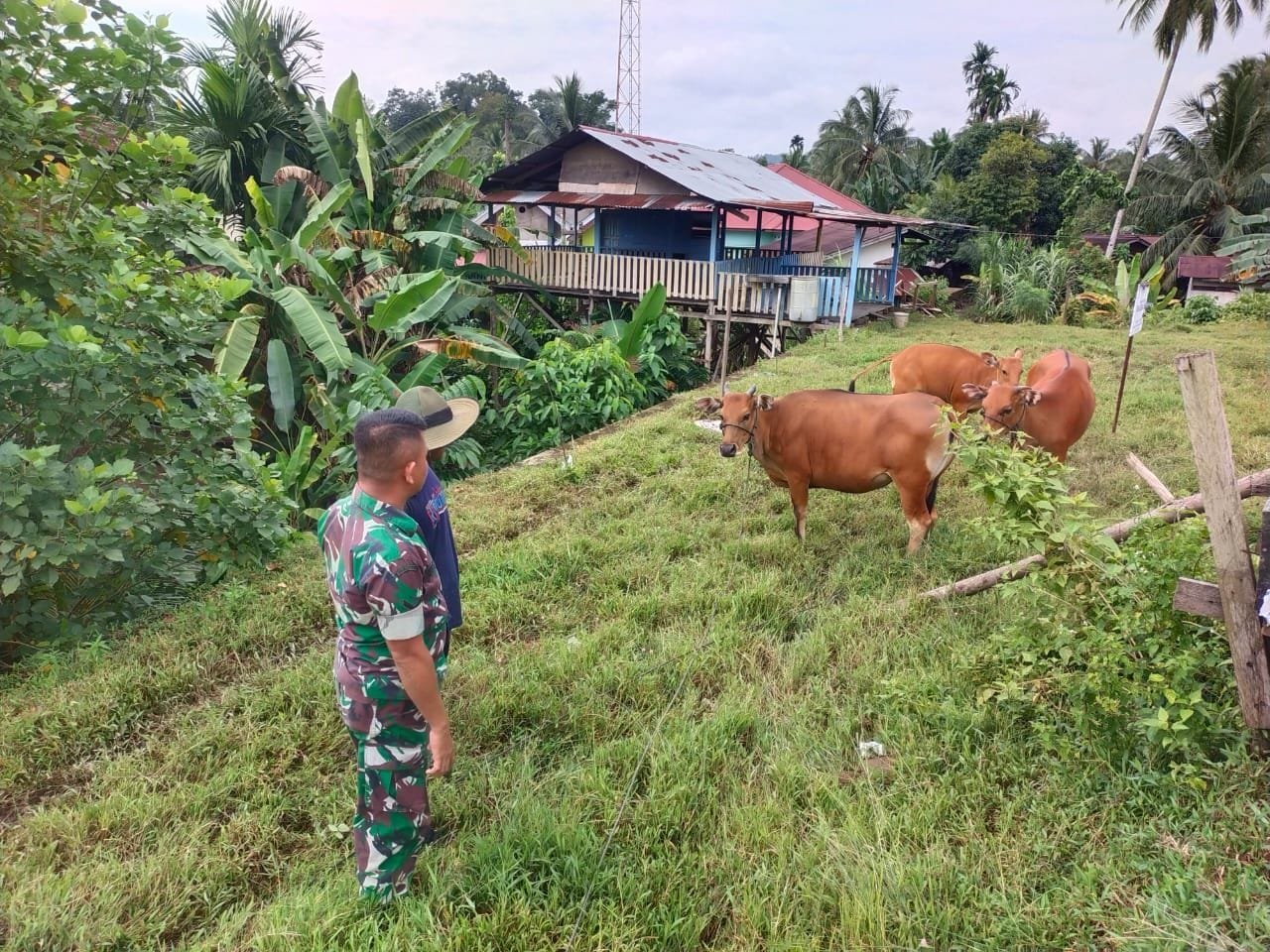 Babinsa di wilayah turun langsung memantau kesehatan ternak di sejumlah peternakan yang ada.Tujuannya untuk mencegah virus PMK dengan melihat langsung hewan peternak kemungkinan adanya ciri-ciri hewan tersebut terjangkit virus PMK.”Ia mengimbau kepada warga maupun peternak agar selalu menjaga kebersihan kandang dan kesehatan hewan ternaknya serta mengantisipasi datangnya hewan ternak seperti sapi, kambing dan kerbau dari wilayah lain”.Ujar Babinsa.