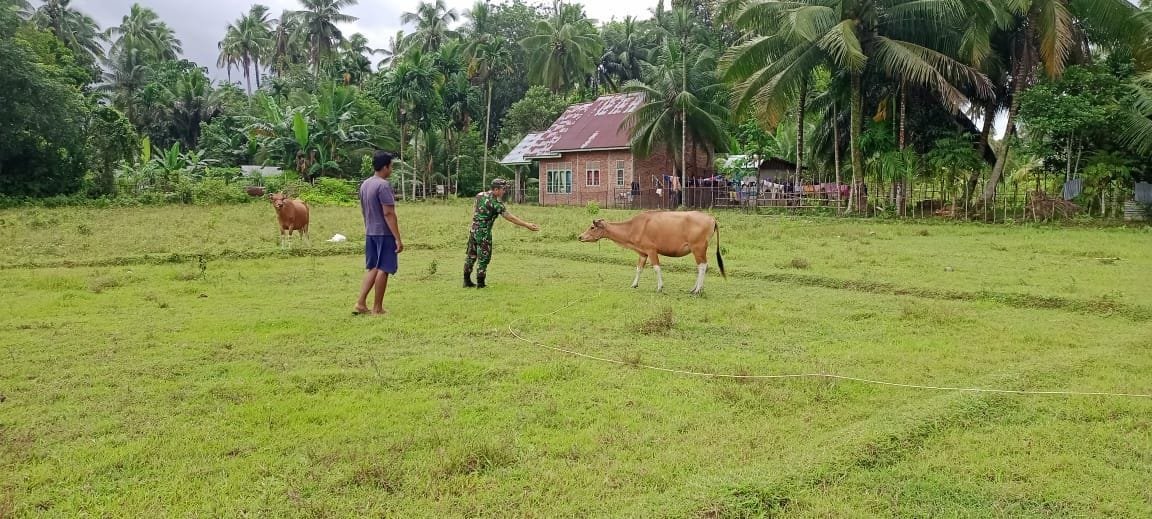 Babinsa di wilayah turun langsung memantau kesehatan ternak di sejumlah peternakan yang ada.Tujuannya untuk mencegah virus PMK dengan melihat langsung hewan peternak kemungkinan adanya ciri-ciri hewan tersebut terjangkit virus PMK.”Ia mengimbau kepada warga maupun peternak agar selalu menjaga kebersihan kandang dan kesehatan hewan ternaknya serta mengantisipasi datangnya hewan ternak seperti sapi, kambing dan kerbau dari wilayah lain”.Ujar Babinsa.