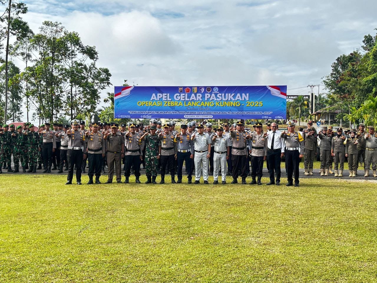 Dalam rangka Apel gelar pasukan Operasi Zebra Lancang Kuning 2025 di Mapolres Kuansing selama 14 hari, terhitung mulai dari 17 s/d 30 November 2025,Adapun sambutan Wakapolres Kuansing Kompol Novaldi, S.Sos.M.Si, mengucapkan Terimakasih Kepada Undangan yang Hadir dalam Kegiatan Apel Gelar Pasukan dalam Rangka Operasi Zebra Lancang Kuning 2025, Kami Mengajak Kepada Ssmua Stekholder dan Instansi Terkait Untuk Bersama-sama Mendukung Operasi Zebra Lancang Kuning 2025 dapat Berjalan dengan Aman dan Lancar, Kepolisian akan Melaksanakan Operasi Zebra Lancang Kuning 2025 Selama 14 Hari Mulai Tanggal 17 s/d 30 Tahun 2025.