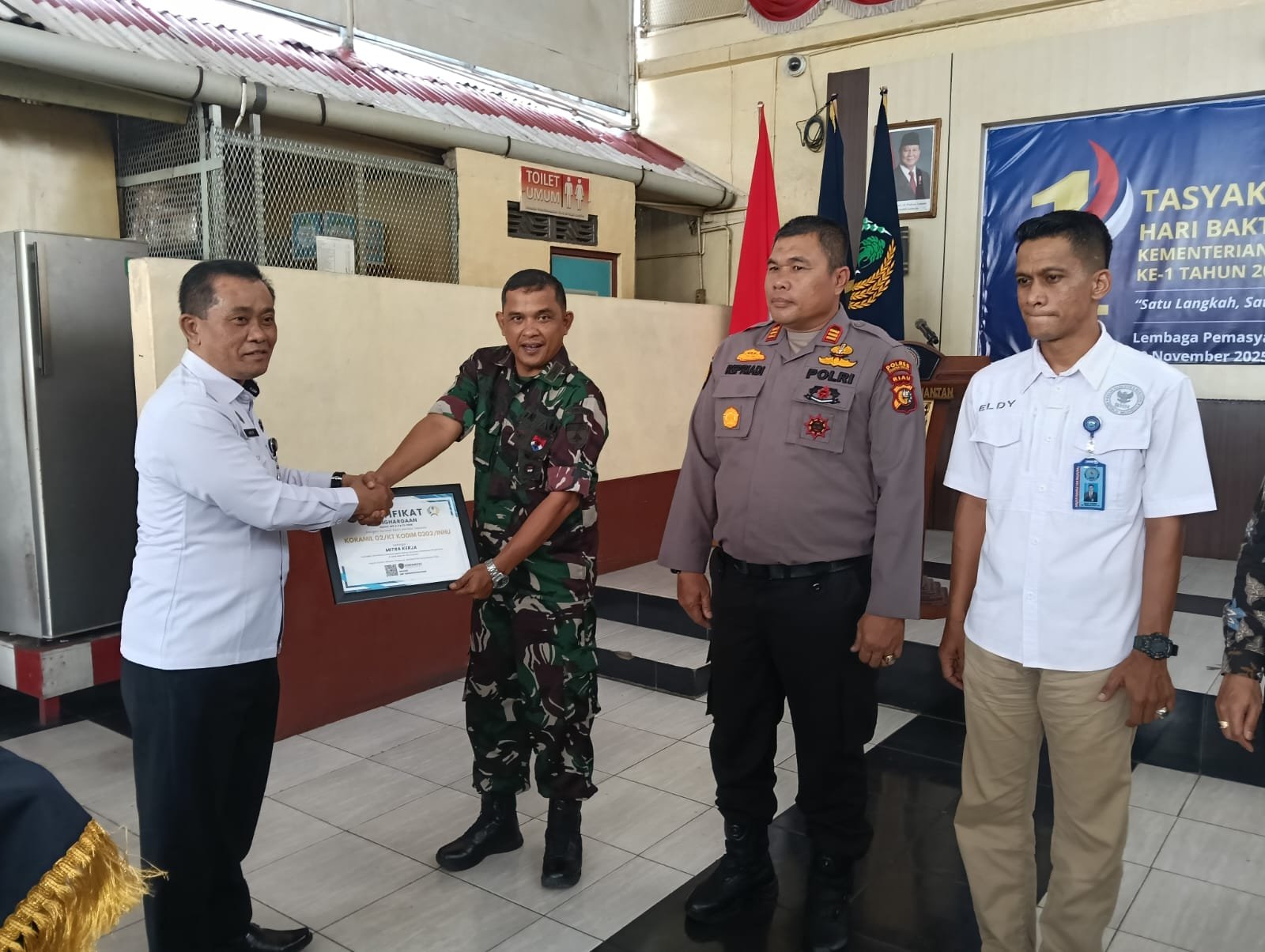 Teluk Kuantan – Komandan Koramil 02/KT Kodim 0302/Inhu Kapten Inf J. Sihombing menghadiri kegiatan Tasyakuran Hari Bakti Kementerian Imigrasi dan Pemasyarakatan di Lapas Kelas ll B Teluk Kuantan di Kel. Pasar Taluk Kec. Kuantan Tengah Kab. Kuansing. Rabu (19/11/2025).