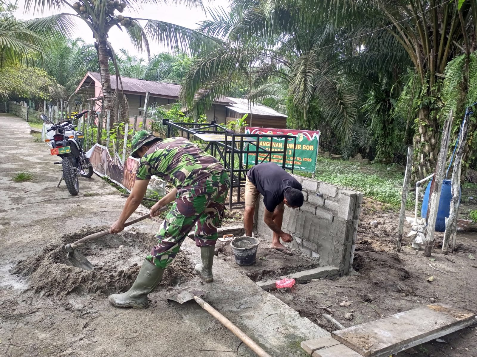 Teluk Kuantan – Program Tentara Manunggal Membangun Desa (TMMD) ke-127 Wilayah Kodim 0302/Unhu Tahun 2026. Anggota Satgas TMMD Ke-127 Kodim 0302/Inhu bersama warga melakukan pengembangunan sumur bor Sasaran 3 di RT 1 Dusun Batang Moncak Kec. Pangean Kab. Kuansing. Jum’at (06/03/2026).