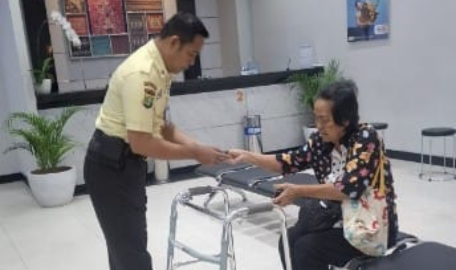 Dalam suasana layanan yang nyaman dan tertib, petugas tersebut terlihat mendampingi nasabah lansia yang menggunakan alat bantu jalan. Ia memberikan penjelasan secara perlahan dan jelas terkait proses transaksi melalui perangkat digital. Pendampingan dilakukan dengan penuh kesabaran guna memastikan setiap tahapan transaksi dapat dipahami dengan baik oleh nasabah.