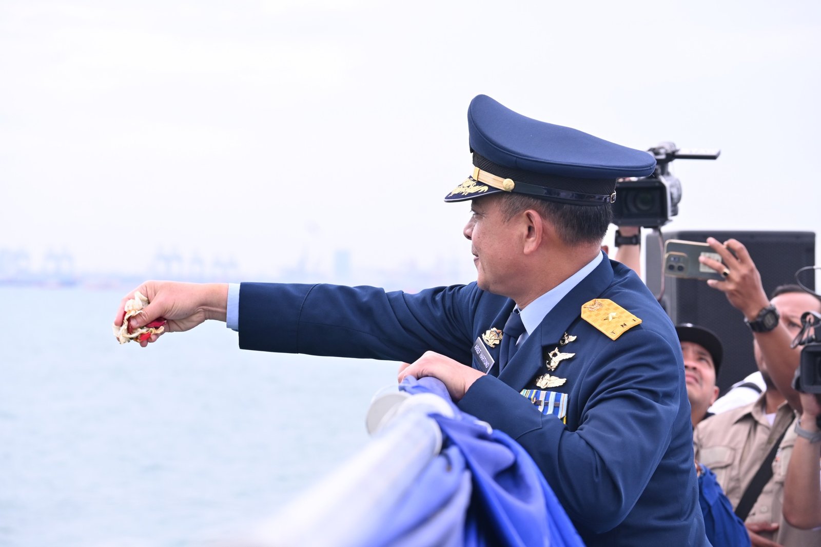 Bisnismetro.id, JAKARTA – Panglima Kodau I Marsda TNI Muzafar, S.Sos., M.M., yang diwakili Kepala Staf Kodau I Marsma TNI Arief Hartono, S.H. MNSA., ikut serta Tabur Bunga di Laut dalam rangka memperingati Hari Dharma Samudera Tahun 2026 yang dipimpin langsung oleh Kasal Laksamana TNI Dr. Muhammad Ali, S.E., M.M., M.Tr.Opsla. Bertempat di KRI RJW-992, Kolinlamil, Tanjung Priok, Jakarta Utara. (Kamis, 15-1-2026).