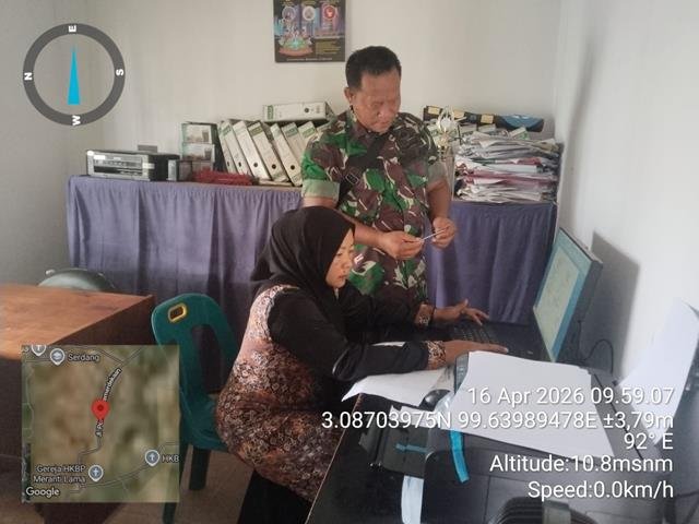 Asahan | Kegiatan ini merupakan kegiatan rutinitas aparat Komando kewilayahan, guna meningkatkan hubungan harmonisasi antara aparat teritorial yakni sebagai babinsa terhadap aparat desa binaannya, agar terjalin hubungan yang baik dengan cara pendekatan komunikasi social, dalam kesempatan ini seperti yang dilakukan oleh Personel Bintara Pembina Desa (Babinsa) Koramil 18/Meranti jajaran Kodim 0208/Asahan Serka Bangun Napitupulu turun kewilayah binaan untuk melaksanakan kegiatan Komunikasi Sosial (Komsos) bersama dengan perangkat desa yang ada diwilayah binaan, komsos bersama aparat Desa dan Kadus bertujuan untuk mempererat tali silaturahmi dan kerja sama yang baik serta mencari informasi yang berkembang di Desa binaan agar tercipta kondisi yang aman dan mengetahui permasalahan yang ada, Komsos bersama aparat desa Ibu Panjaitan dan Ibu Misgianti, kegiatan tersebut yang dilaksanakan bertempat di Desa Serdang Kecamatan Meranti Kabupaten Asahan, Kamis (16/04/2026).