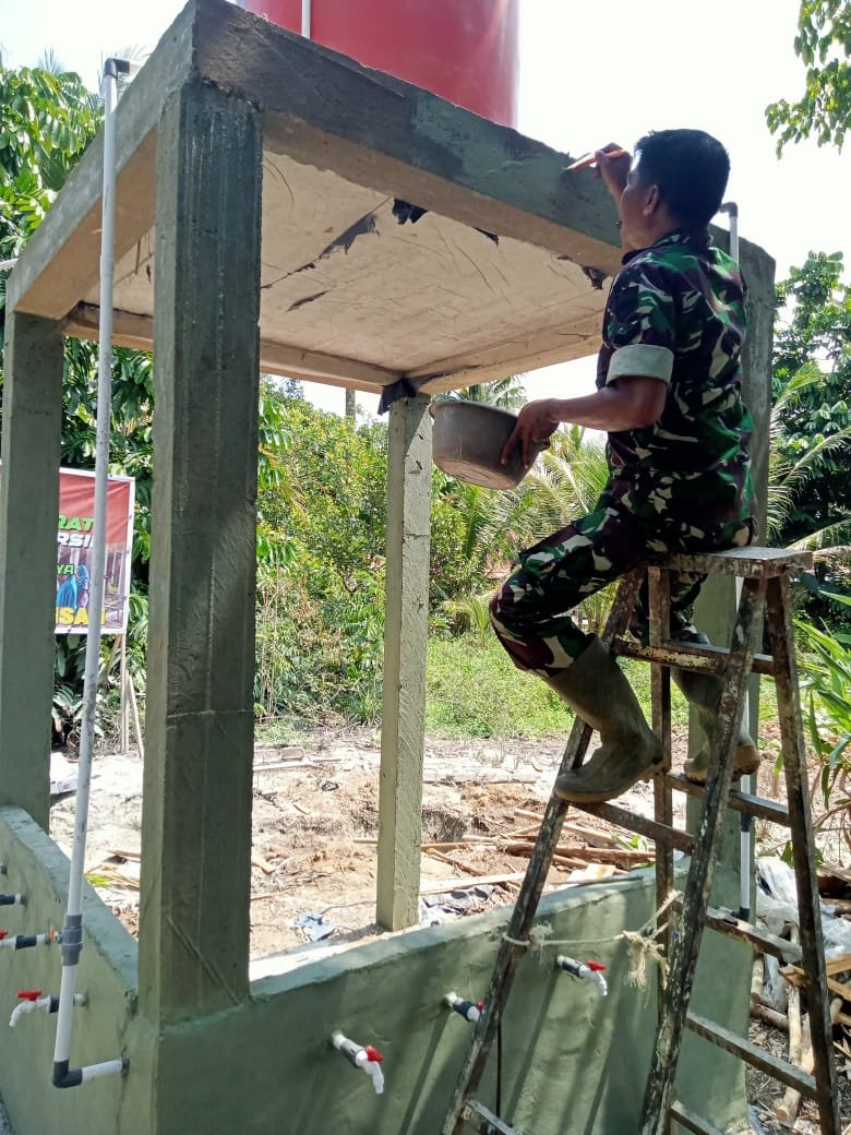 Di dalam mengatasi permasalah air bersih di Desa Pantai Kecamatan kuantan mudik kabupaten kuantan Singingi,Babinsa Koramil 08/KM Kodim 0302/Inhu Sertu Hendro dan Kopda Amron melaksanakan pembuatan Sumur bor, yang mana tahapan pembuatan sumur ini sudah memasuki tahap Finishing, terlihat Babinsa di bantu warga melaksanakan pengecetan pada anjungan toren. Kamis (02/10/2025).