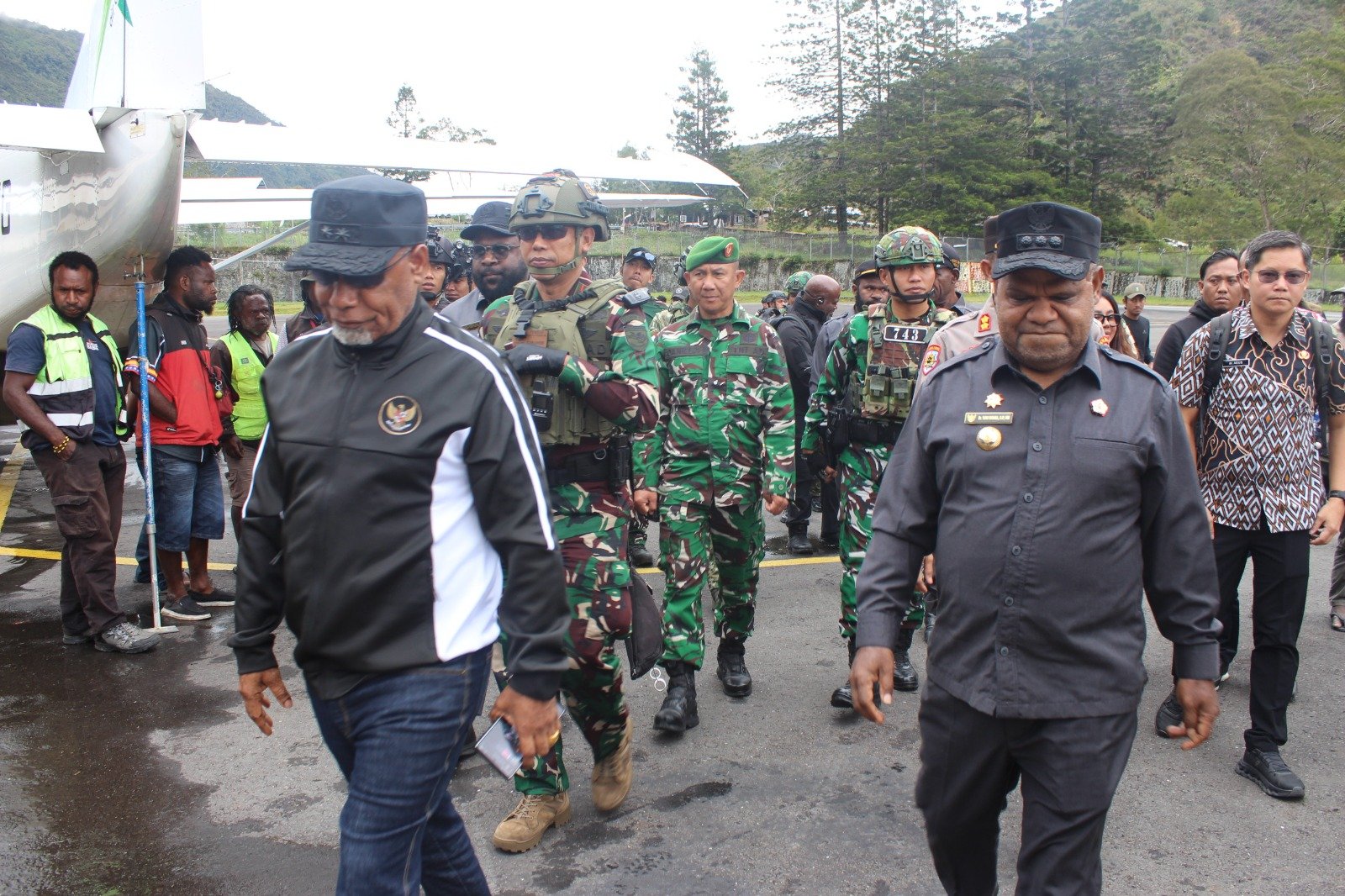 Rombongan pejabat tinggi menyampaikan apresiasi luar biasa serta ucapan terima kasih yang setinggi-tingginya atas dedikasi dan pelaksanaan tugas yang sangat baik dan profesional dari seluruh pasukan yang bertugas di Kabupaten Puncak Jaya. Usai tuntas melaksanakan kunjungan kerja, rombongan kembali melanjutkan perjalanan menggunakan pesawat menuju tujuan masing-masing. (Pen Kodim 1714/PJ)