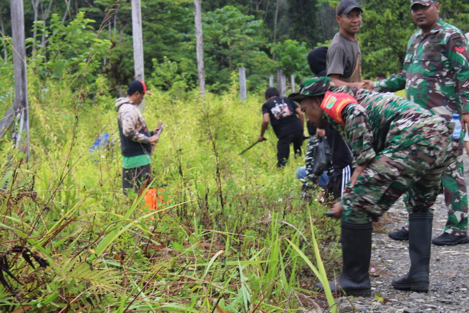 Setelah tiba di lokasi pekuburan umum, para anggota pengamanan langsung memasuki kedudukan pengamanan parameter dan masyarakat maupun personel yang melaksanakan pembersihan memulai proses pembersihan. Pada pukul 09:30 WIT anggota melaksanakan istirahat sambil mengkonsumsi hidangan (polo pendem dan kopi) yang disediakan oleh pengurus Masjid At-Taqwa Dekai. Kehadiran tokoh-tokoh penting seperti Letkol Inf Didiet Trilaksono, S.M.,M.H.I., menambah semangat gotong royong.